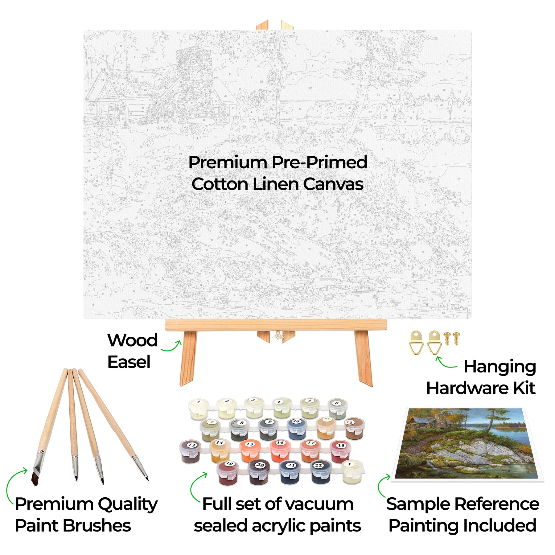 Our paint by numbers kit for adults includes: