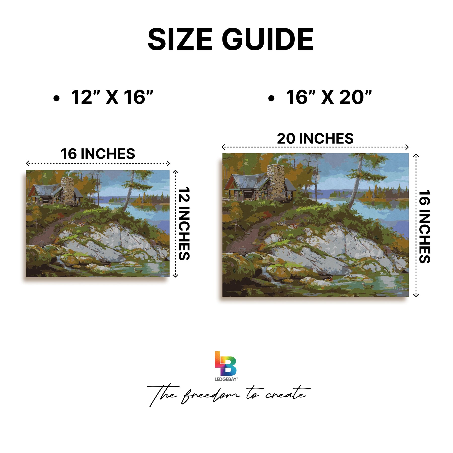 Ledgebay offers 12” x 16” all the way up to 18” x 24” canvas sizes