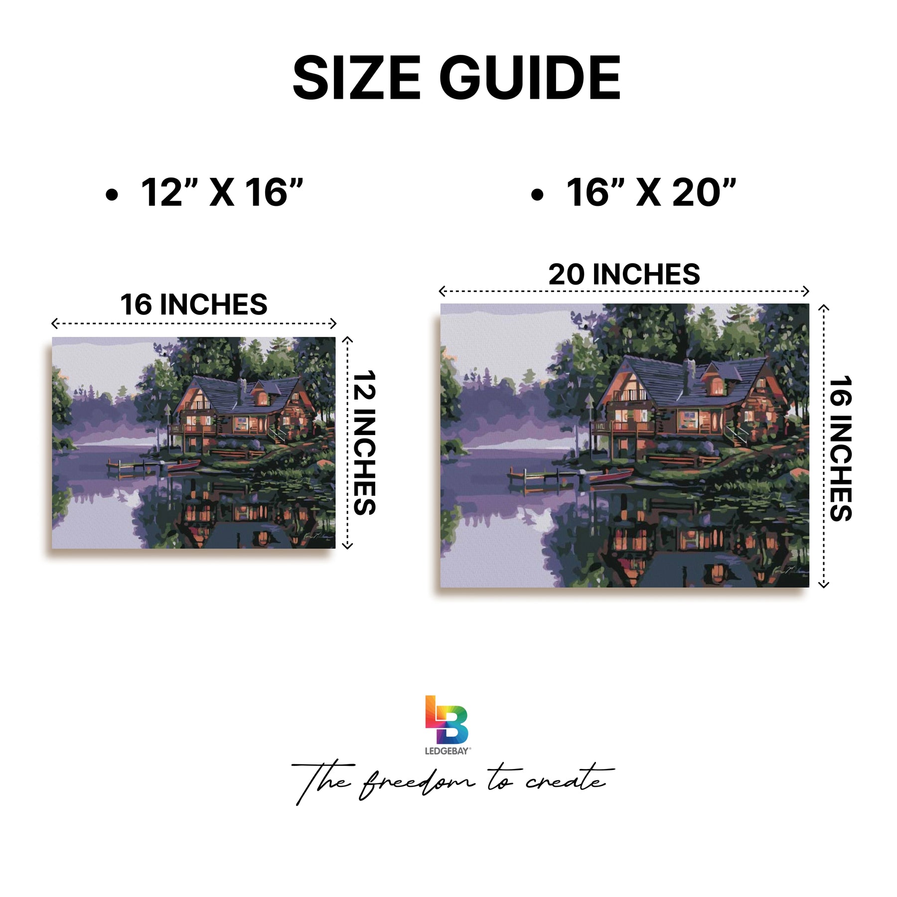 Our Unframed kits include:   Ledgebay provides everything you need to become an inspired artist. Our large paint by numbers kit for adults includes one premium pre-primed canvas, set of instructions, 4 paint brushes of different sizes, 1 vacuum sealed set of acrylic paints, a small photo of the finished painting for reference, and an 11" x 17" printout in case the artist messes up.