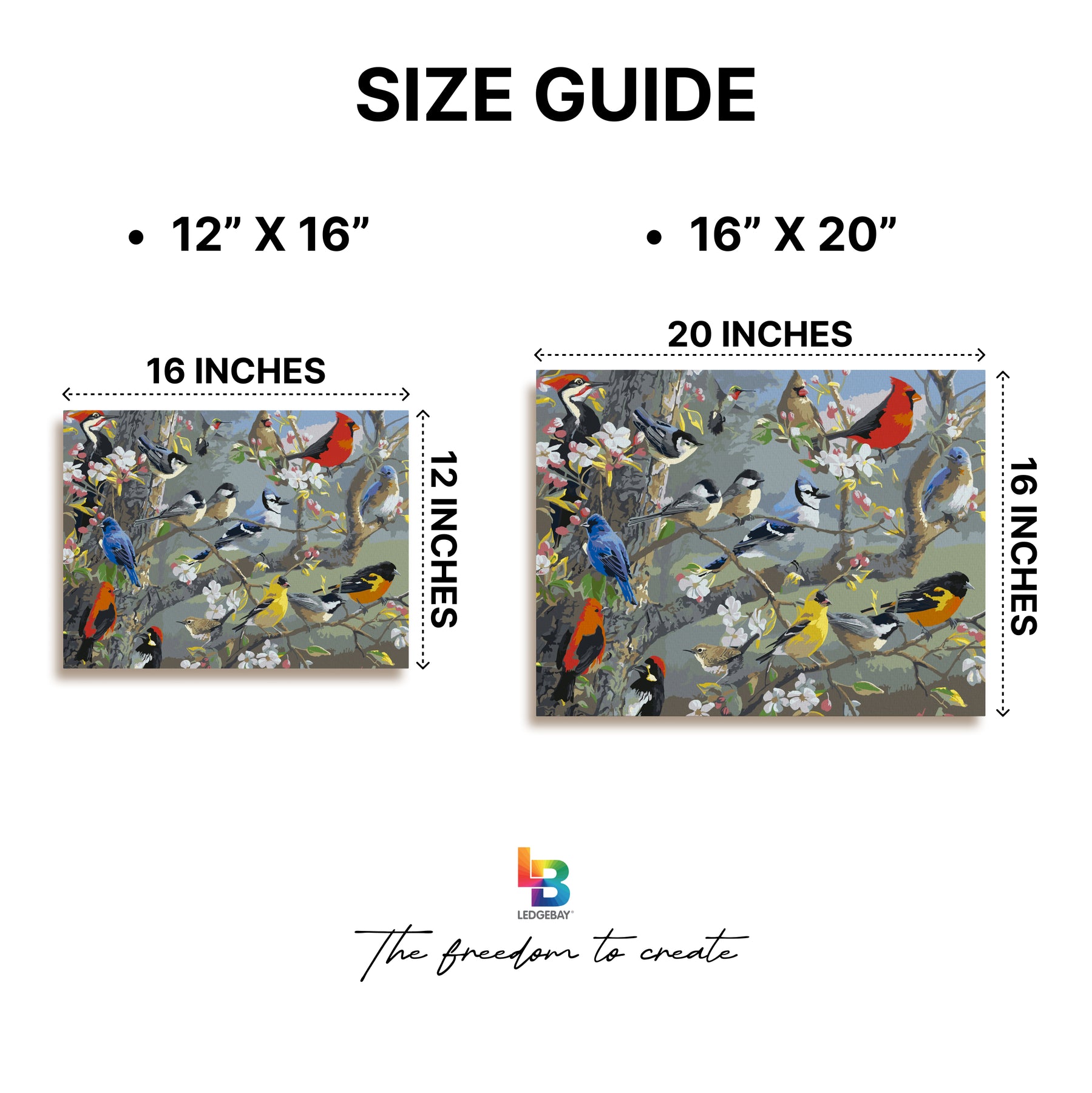 Our Unframed kits include:   Ledgebay provides everything you need to become an inspired artist. Our large paint by numbers kit for adults includes one premium pre-primed canvas, set of instructions, 4 paint brushes of different sizes, 1 vacuum sealed set of acrylic paints, a small photo of the finished painting for reference, and an 11" x 17" printout in case the artist messes up.